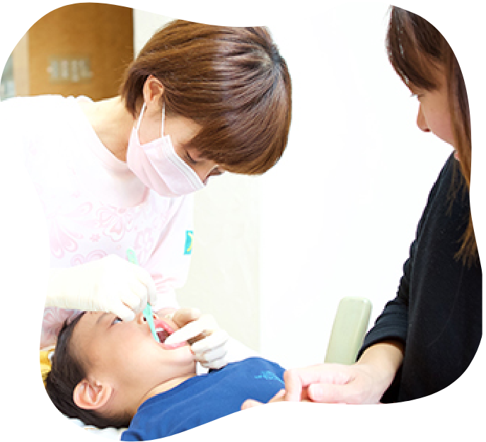 子どもの歯は柔らかい性質のため、虫歯菌が作り出す酸によってダメージを受けやすいです。そのため、フッ素塗布などで歯質を強化することにより虫歯予防になります。 子どもの歯には生え変わりがあり、乳歯と永久歯が混在する時期があります。こうした不安定な歯並びや嚙み合わせのときには、プラークなどの汚れが歯の隙間などに溜まりやすく虫歯のリスクが高くなります。子どもの歯並びが安定するのは永久歯が生えそろう12歳以降となっています。それまでは、しっかり歯磨きをすることがとても大切です。